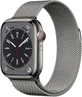 Apple Watch Series 8 (GPS + Cellular 41mm) Smart watch – Gold Stainless Steel Case with Gold Milanese Loop. Fitness Tracker, Blood Oxygen & ECG Apps, Water Resistant (Renewed)